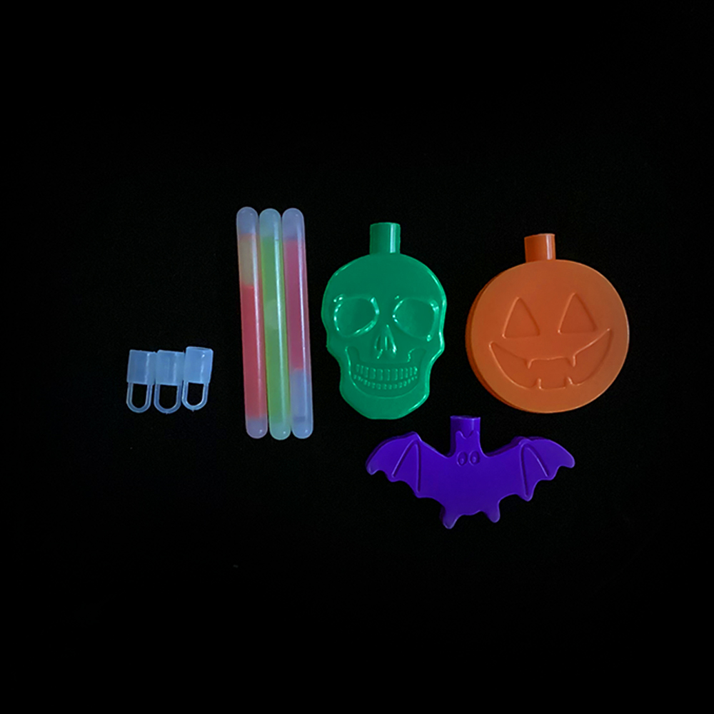 Peppen Sie Ihr Halloween-Kostüm auf und machen Sie sich den Geist der Saison zu eigen mit dem Halloween-Fledermaus-Skelett-Kürbis-Leuchtstab-Anhänger von Xiamen Long Afterglow Co., Ltd. Dieses außergewöhnliche Accessoire kombiniert die ikonischen Elemente von Halloween - Fledermäuse, Skelette und Kürbisse - zu einem schillernden Design, das garantiert alle Blicke auf sich zieht und einen unvergesslichen Eindruck hinterlässt.