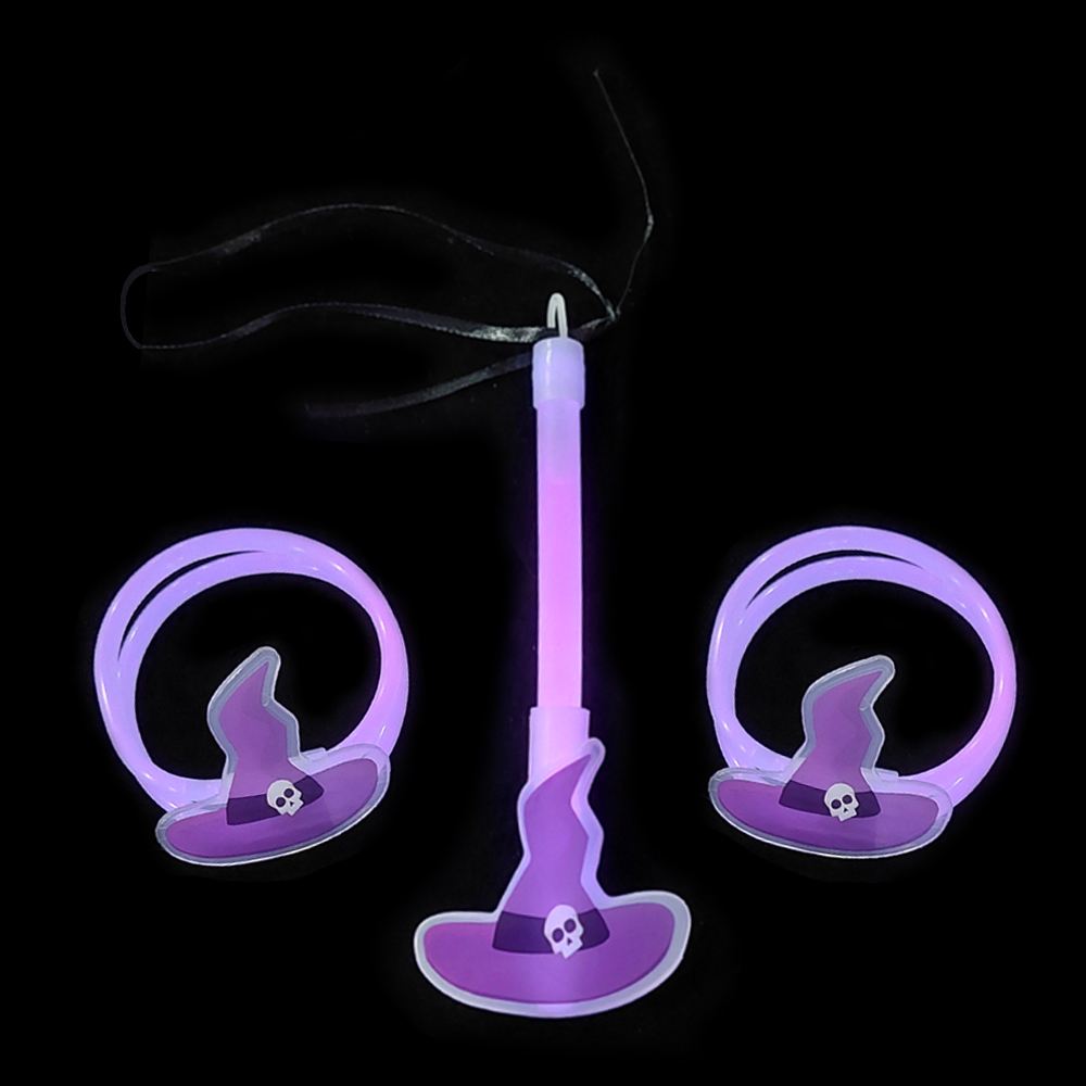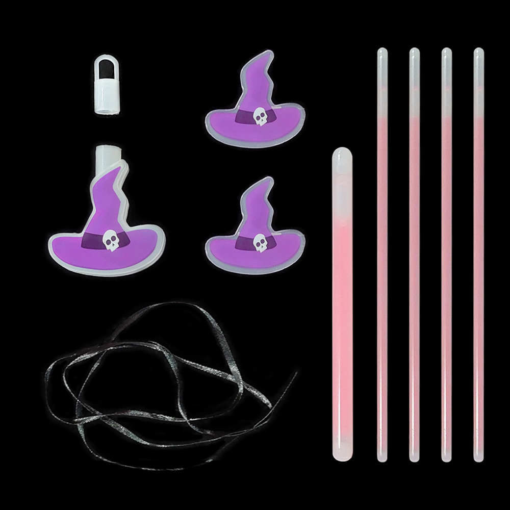 Pero la magia no acaba ahí. Llega la Pulsera Brillante, una fina banda que envuelve tu muñeca como un abrazo hechizado. Fabricada con el mismo material encantado que el colgante, brilla suavemente con una luz hechizante que complementa el encanto del sombrero de bruja.