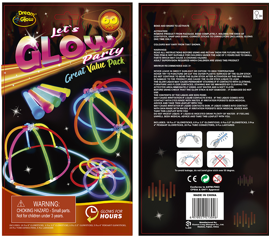 El Glow Party Great Pack está fabricado con materiales de primera calidad, lo que garantiza una larga duración y diversión sin fin. Como las barritas luminosas son resistentes al agua, no son inflamables ni tóxicas, se pueden utilizar tanto en interiores como en exteriores con cualquier tiempo. Como ofrecen la opción de reciclarlas después de usarlas, también son beneficiosas desde el punto de vista ecológico.