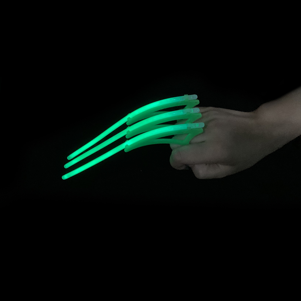 Diseñado para parecerse a las temibles garras de un hombre lobo, este exclusivo accesorio luminoso dará que hablar. La garra de plástico presenta cinco uñas afiladas y curvadas y se ajusta con seguridad a los dedos, cubriendo la palma de la mano. Puedes insertar barritas luminosas en los cinco orificios de la garra, creando un cautivador efecto luminoso que dejará a todos boquiabiertos.